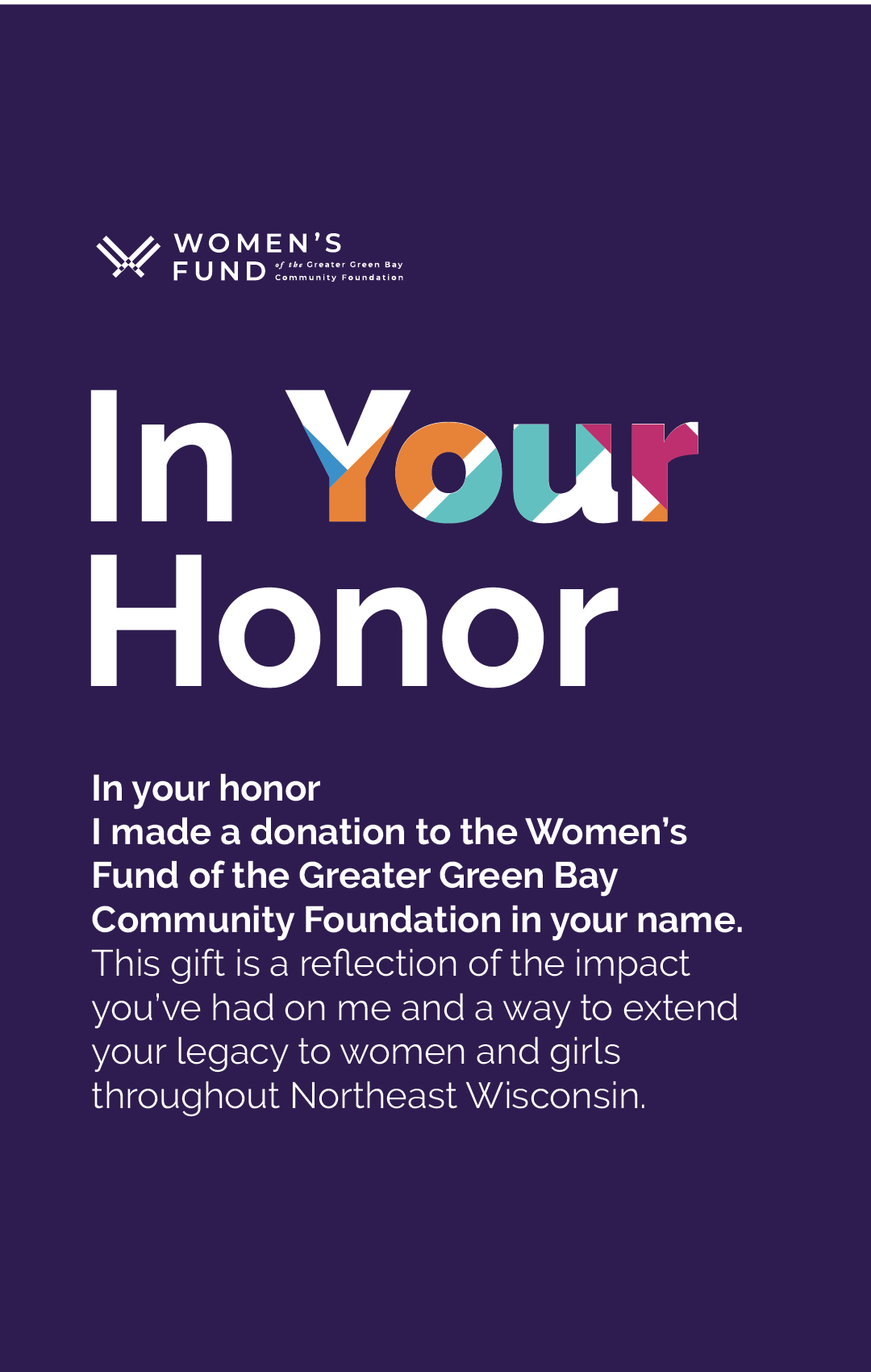 This May, the Women’s Fund invites you to celebrate a woman who has inspired you by making a gift in her honor. Your support does more than pay tribute. It opens doors of opportunity for women and girls right here in Northeast, WI.